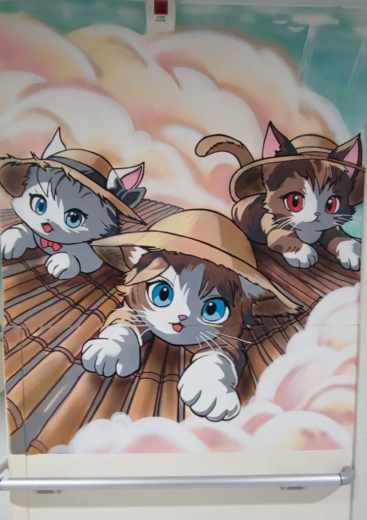 « Trois petit chat, chapeau de paille en référence a la chanson marabout de ficelle